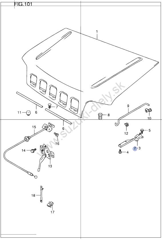 Záves krytu motora LH Baleno / Jimny / Swift